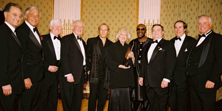 ![]() BMI's Frances Preston (center) gets lots of love from presenters Michael Bolton and Isaac Hayes |