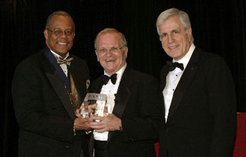 ![]() BMI composer Chris Cerf (center) is congratulated by MENC Chairman Dr. Willy Hill and BMI's Robbin Ahrold. Photo by Robert N. Blanken, CPP, Cr.Photog. |
