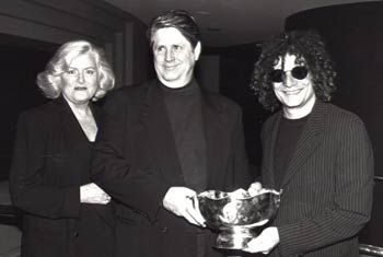 | Brian Wilson (center) accepts the BMI President's Award from BMI's Frances Preston and producer Don Was at a special ceremony in 1995 |