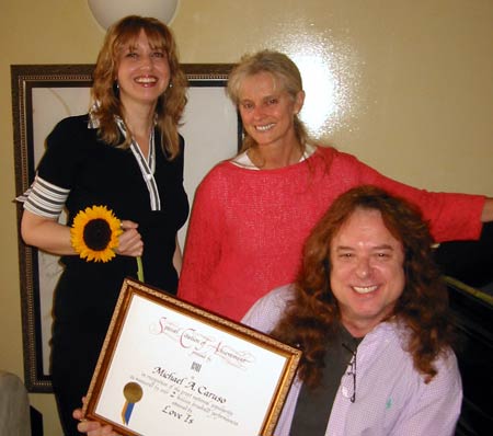 | Congratulating Caruso are BMI's Claudia Billen and Barbara Cane. |