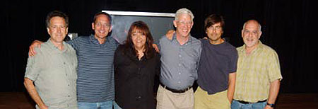 | Standing are Sundance Fellows Peter Fitzpatrick, Gary Louris, Aiko Fukushima, and Raz Mesinai, and BMI's Doreen Ringer Ross. Seated are Sundance Fellow Joseph Gonzalez and Creative Advisors Jeff Beal, Robert Messinger and Evyen Klean. |