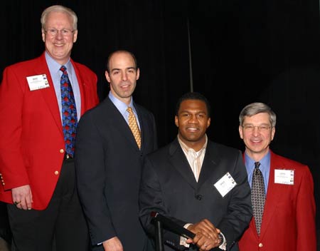 | Pictured at RAB2005 are Mike Mahone, Executive Vice President, Services, RAB; BMI's Mark Barron, Asst. VP, Marketing, Media Licensing; Mike Watkins, Account Executive, KDGS-KFH-FM/AM, Entercom, Wichita; and John Potter, Vice President/Director RAB Radio Training Academy |