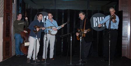 | Larry Sparks and the Lonesome Ramblers: Matthew Madden (acoustic bass), Scott Napier (mandolin), Joshua McMurray (banjo) and Michael Feagan (fiddle) |