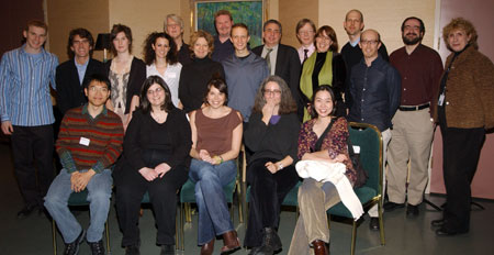| Pictured after the "Smoker" are (seated) Workshop writers Jihwan Kim, Barbara Anselmi, Jill Abramovitz, Alison Loeb, Joy Son, (standing) Adam Overett, Sean Hartley, Phoebe Kreutz, Carla Rose Arnone, Bruce Mc Rae, Carey Lovelace, Brad Houghton and Aron Accurso, Smoker producers Frank Evans and Pat Cook, Workshop writers Beth Falcone, Jeff Blumenkrantz, Steve Routman and Jack Lechner, and BMI's Jean Banks. Photo by Gary Gershoff |