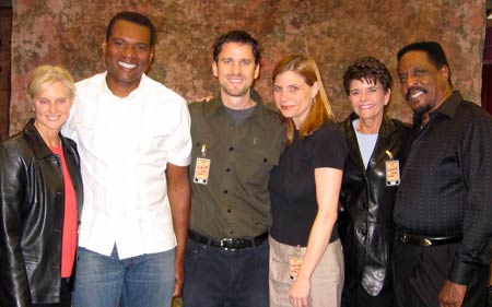 | Shown before the ceremony are BMI's Barbara Cane, RockWalk inductee Robert Cray, BMI's Tony George, Tracie Verlinde and Paige Sober, and RockWalk inductee Ike Turner. |