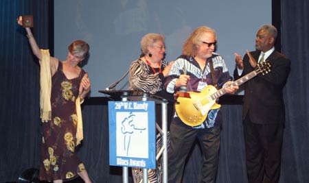 | Handy winner Marcia Ball, presenter Ann Rabson, Handy winner Bob Margolin and BMI's Thomas Cain |