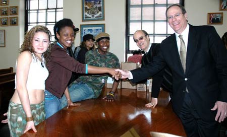 | Pictured before the show are (clockwise) Fatty Koo members Marya, Valure, Eddie B and Gabrielle, and BMI's J.W. Johnson and Charlie Feldman. |