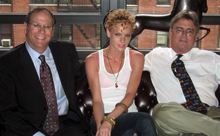 | BMI songwriter Kate Nauta (center) is welcomed by BMI's Charlie Feldman and Phil Graham. photo by Dana Rodriguez |