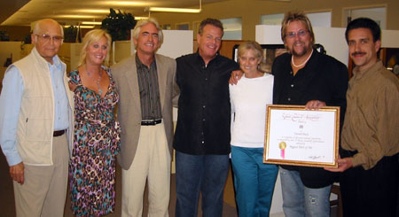 | Shown at the luncheon are Concord Music Group co-owner and ACT 111 CEO Norman Lear, Peak Records President Andi Howard, album guest star David Benoit, Concord Music Group GM Gene Rumsey, BMI's Barbara Cane, Pack, and Concord Music Group President Glen Barros. |