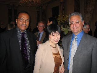 | Monk Institute Honorary Chairman Billy Dee Williams, competition winner Junko Moriya, and BMI's Del Bryant |