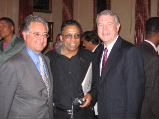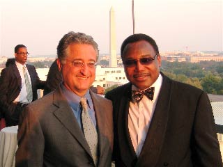 | BMI's Del Bryant and Grammy Award winning artist George Benson, who received the Institute's "Maria Fisher Founder's Award," on the balcony of the State Department overlooking the National Mall |