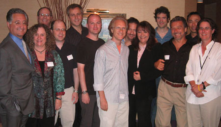 | Pictured before the luncheon are BMI's Del Bryant, Linda Livingston and Charlie Feldman; composers Peter Lurye, Phil Garrod, Reed Hayes, Mark Suozzo and Michael Wolff, BMI's Doreen Ringer Ross; composers John Kimbrough and Ed Kalehoff; and BMI's Ray Yee and Alison Smith. photo by Dana Rodriguez |