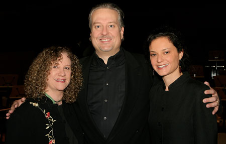 | Congratulating composer Don Davis (center) are BMI's Linda Livingston and Ivanne Deneroff. |