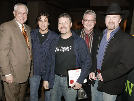 | Pictured at the party are BMI's Paul Corbin, artist Joe Nichols, BMI songwriter Gary Hannan, BMI's Perry Howard and BMI songwriter John Wiggins. |