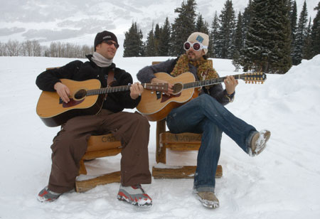 | Jaime Hanna and Jonathan McEuen "busk" on the top of Mt. Crested Butte |