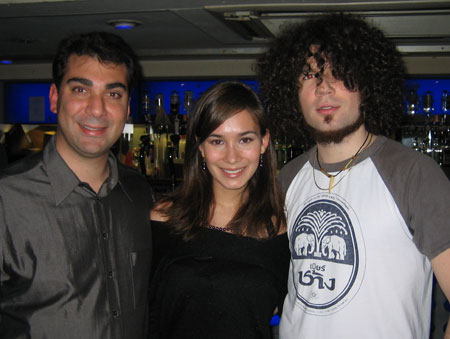 | Shown at the event are BMI London's Brandon Bakshi; Celena Horan, Chairperson for the London School of Economics' Music Business Society; and Aram, lead singer of Titan System |