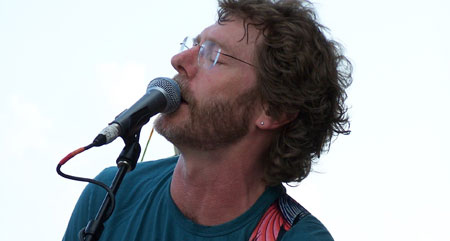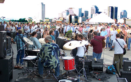 | Sam Bush belts one out on BMI's rooftop.Photo by Alan Mayor |