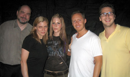 | Shown after her performance are (l to r): Music attorney Dan Stewart, BMI's Tracie Verlinde, July "Pick of the Month" artist Mandi Perkins, and BMI's Myles Lewis and Joe Maggini. |