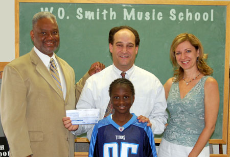 | W.O. Smith Music School student Jamie (in front) is pictured at the school's Edgehill location with BMI's Thomas Cain, W.O. Smith Music School's Executive Director Jonah Rabinowitz and BMI's Kay Clary. Photo by E. Dawson |