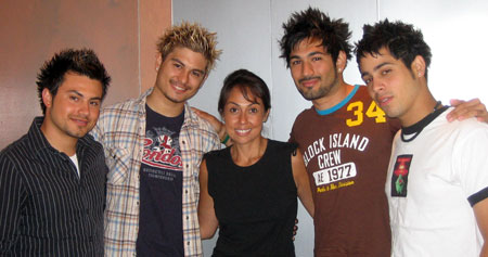 | BMI's Delia Orjuela (center) welcomes 6 Twenty's Bobby, Richie, Jose and Tito. Photo by Ellen S. Ratner |