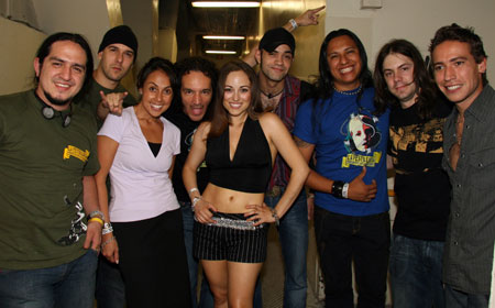 | La Pestilencia's Marcelo Gómez, Carlos Marín, BMI's Delia Orjuela, Dilson Díaz, Fronteras' Bella, Kinky's Cesar Pliego, La Pestilencia manager Roberto López, La Pestilencia bassist Juan Gómez and Moktezoom's Luis Torreblanca |