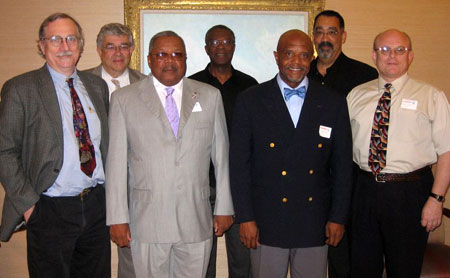 | Pictured after the meeting are BMI's David Sanjek, Robert Freeman, Eric Winston, Samuel Floyd, Ronald Crutcher, Paul Burgett and Morris Phibbs. Photo by Dana Rodriguez |