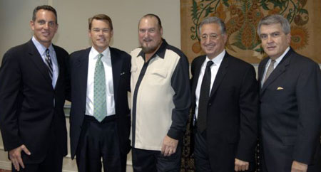 | Shown after the performance are BMI's Mike O'Neill, NAB President & CEO David Rehr, BMI songwriter Steve Cropper; BMI's Del Bryant, and NAB Vice President John David. |