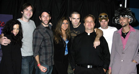 | Pictured are Philly Chick Pictures' Brooke Lewis, Patrick Hallahan (The Crashtones), Glenn Howerton (It's Always Sunny In Philadelphia), BMI's Anne Cecere, Sam Witwer (Battlestar Galactica/The Crashtones), Tim Hibben (The Crashtones), and Brian Taylor and Demetri Evdoxiadis (The Crashtones). |