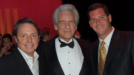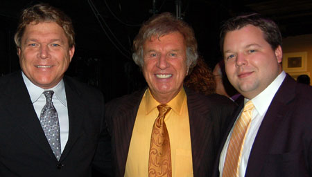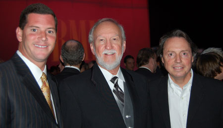 | Bluegrass luminary Del McCoury (center) attended BMI's pre-party and performed during the awards ceremony. He is pictured with BMI's Jody Williams and Mark Mason. Photo by K. Clary |