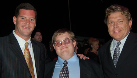 | Attendees were happy to see gospel legend Bill Gaither (center) at both the pre-party and the awards ceremony. He is pictured here with BMI's David Preston and Bradley Collins. Photo by K. Clary |