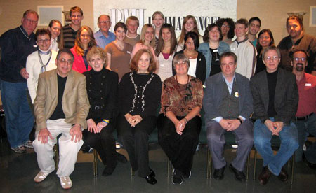 | Valparaiso High School students and teachers gather with Workshop faculty at the day-long interactive seminar. Pictured are (back row): Dan Nellessen, Elizabeth Uzelac, Drew Nellesen, Richard Engquist, Tom Leland, Andria Kessler, Molly Vass, Tanau Popli, Aaron Porter, Mark Blane, Alan Chambers; (middle row): Ann Nellessen, Becky Schoon, Kathy McMillan, Laura Punter, Jamie Patton, Lindsay Babcock, Erin Gerig, Erika Marinello; (front row): Frank Evans, Jean Banks, Nancy Golladay, Alice Gambel, David Spencer, Pat Cook and Daniel Pritchett. |