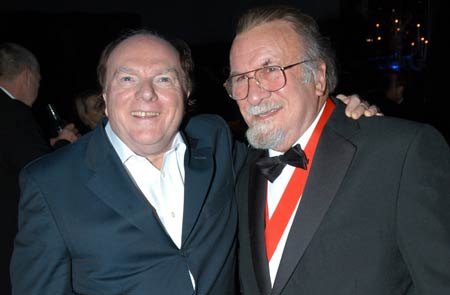 | Legendary songwriter/artist Van Morrison, who received the evening’s top honor as the BMI ICON, chats with BMI songwriter Acker Bilk, who received a standing ovation for his timeless composition “Stranger on the Shore,” which was honored with a 4 Million Performance Award. |