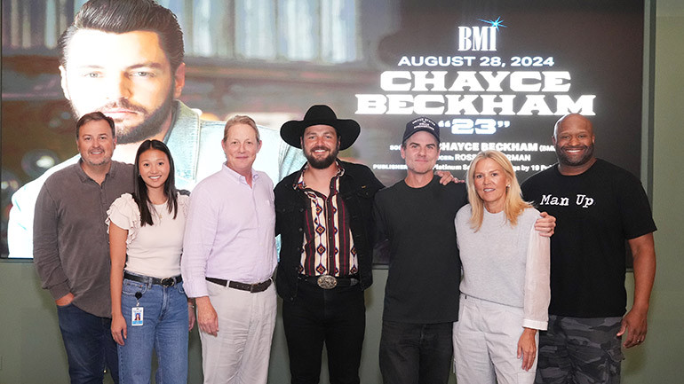 BMI and the Music Row community piled in the lobby of BMI’s Nashville headquarters to celebrate 19 Recordings/Wheelhouse Records/BMG’s Chayce Beckham’s first-ever No. One hit, “23.” The solo-penned chart-topper hails from the American Idol winner’s debut record, Bad for Me, and earned him his first nomination at the CMT Awards earlier this year for Breakthrough Male Video of the Year.