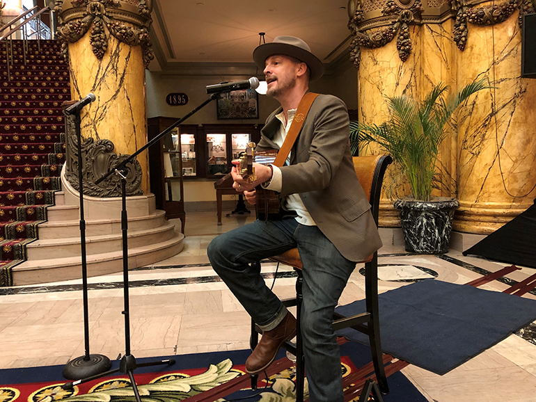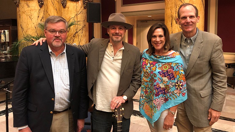 Awarding winning BMI songwriter and Nashville artist Jason White brought his unique blend of country, pop and blues to the summer meeting of the International Society of Hotel Associations held recently (6/11) at the Jefferson Hotel in Richmond. White, an accomplished independent artist himself, performed some of his original material along with “Red Ragtop”, the smash hit he wrote for Tim McGraw, and “Chocktaw County Affair,” a song that Carrie Underwood recorded on her Storyteller album. The ISHA winter conference was attended by the respective heads of the state hotel & lodging associations along with executives from the major hotel chains.