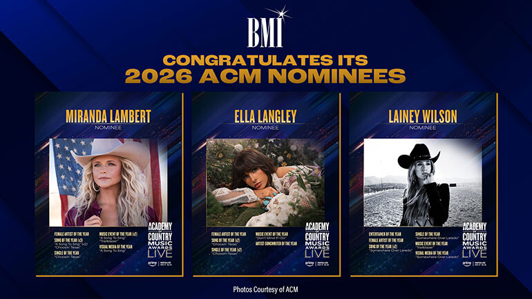 The 61st ACM Awards will stream live on May 17 at 7 p.m. CST via Prime Video, the Amazon Music channel on Twitch, or the Amazon Music app. Previously announced BMI performers include Johnson, Wilson, Little Big Town, Lambert and Green, with more to be revealed in the coming weeks.