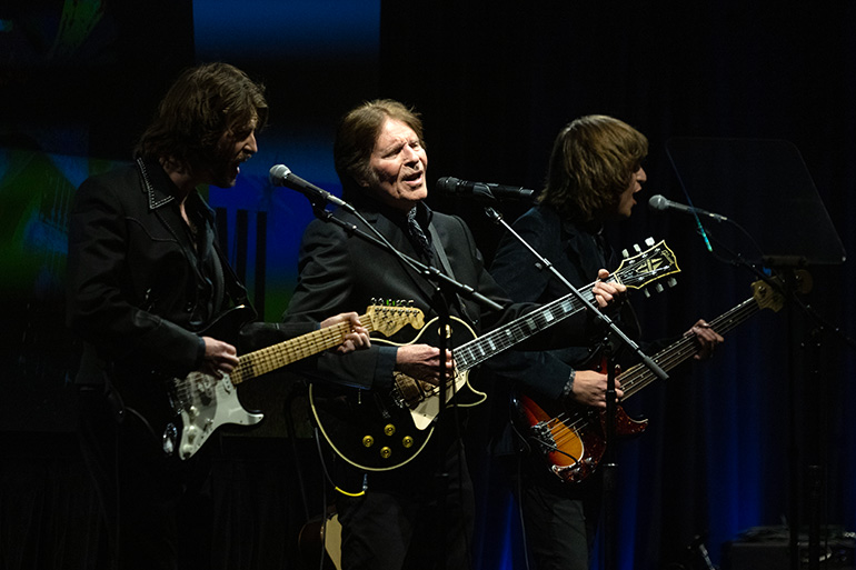 John Fogerty (center) performing with his sons, Tyler Fogerty (L) and Shane Fogerty (R) at the 73rd Annual BMI/NAB Dinner at Wynn Las Vegas on April 18, 2023. Photo Credit- Lester Cohen for BMI.