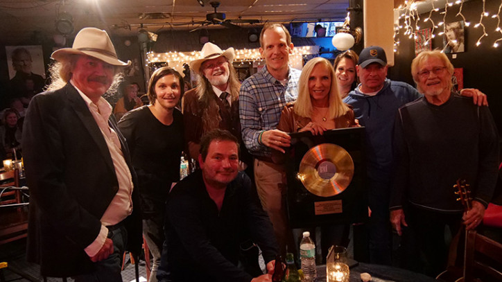 The legendary Bluebird Café in Nashville was the site of a very special tribute to a woman in the hospitality industry that has been supporting BMI songwriters for more than 20 years. Florida Restaurant & Lodging Association President and CEO Carol Dover was honored recently (2/27) by BMI and a handful of hit songwriters who have been positively impacted by both her generosity and advocacy. During her tenure as head of one of the most respected restaurant and lodging associations in the country, Dover has made supporting songwriters one of her major priorities, which is evident by the number of songwriter festivals the FRLA has sponsored over the years and the help she has provided BMI in advocating for songwriters both judicially and legislatively. The Bluebird tribute show was spearheaded by Nashville Songwriter Hall of Fame inductee Aaron Barker and his wife Theresa, and featured Warner Brothers recording artist Charlie Worsham, iconic artist/songwriter Bruce Channel and country hitmakers Tim James, Dylan Altman, Bridgette Tatum and Earl Bud Lee. The evening was capped by BMI’s presentation of a Gold Record to Dover.