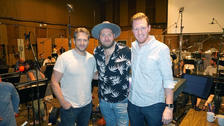 Pictured (L-R) at the Barbara Streisand Scoring Stage at Sony Pictures Studios are: director Ari Sandel, BMI composer Dominic Lewis and BMI’s Chris Dampier.