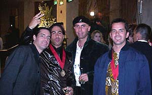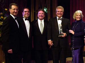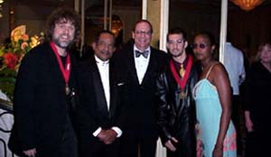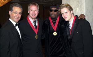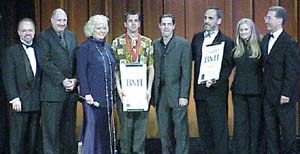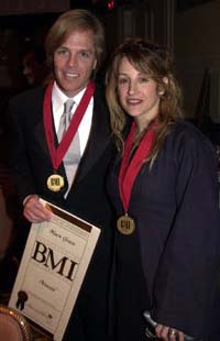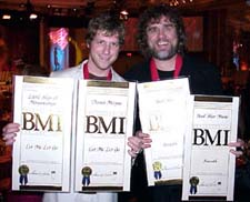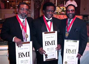 |  Shown at the dinner after EMI Music Publishing was named Publisher of the year are: BMI's Del Bryant; Evan Lamberg, Sr. VP Creative, East Coast, EMI Music Publishing; Robert Flax, Exec VP EMI Music Publishing Worldwide; Martin Bandier, Chairman/CEO, EMI Music Publishing; and BMI's Frances W. Preston.  Legendary songwriting trio Brian Holland, Lamont Dozier and Eddie Holland.  BMI's Del Bryant; singer/songwriter Shawn Mullins; songwriter/rap artist Kool Moe Dee; and singer/songwriter Tal Bachman.  BMI's Charlie Feldman; BMI songwriter Jon B and his wife, Musiic; and BMI's Catherine Brewton.  Songwriter Dennis Morgan; BMI Board Member Frank Melton; BMI's Charlie Feldman; Jon B and Musiic.  Songwriter Tal Bachman ("She's So High"); BMI's Barbara Cane; songwriter Itaal Shur ("Smooth"); BMI's Frances W. Preston and Del Bryant.  Shown on stage are, l to r: Warner/Chappell's Rick Shoemaker and Greg Sowders; BMI's Frances W. Preston; Smash Mouth's Greg Camp and Paul DeLisle; Warner/Chappell's Les Bider; and BMI's Barbara Cane and Del Bryant.  Paul DeLisle of Smash Mouth; Arion Salazar of Third Eye Blind; John Laraio; and Greg Camp of Smash Mouth.  Kool Moe Dee.  Songwriters Marv Green ("Amazed") and Robin Lerner ("This Kiss") |