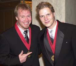 Songwriters Itaal Shur and Dennis Morgan show off their awards. |