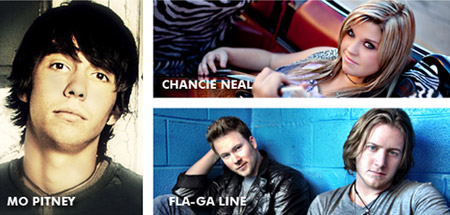 Saturday jump starts with newcomer Mo Pitney. Louisiana native Chancie Neal takes the stage next, followed by new country-rock duo Florida Georgia Line.