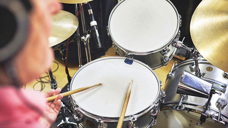 Recording drums ranks among the most challenging of home-recording activities, which is why we periodically revisit the subject with new ideas and fresh approaches. Here we present another cross-section of percussion miking strategies, from ultra-basic to more sophisticated techniques requiring multiple mics strategically placed around the kit. Before you get going, remember that a good recorded drum sound starts with a good-sounding drum set—to wit, make sure all drumheads are in decent shape and are properly tuned, using dampening material and hardware adjustments to eliminate excessive ringing, snare rattling, pedal squeaks or other unwanted noises. A sympathetic space, such as one with a bit of wood paneling and some carpeting out front providing the right blend of reflection and absorption, doesn’t hurt either. And let’s not forget the most important part: a solid drummer who plays with great feel and sounds superb in the room. Once you have that, just put up some mics and off you go. Here’s how.