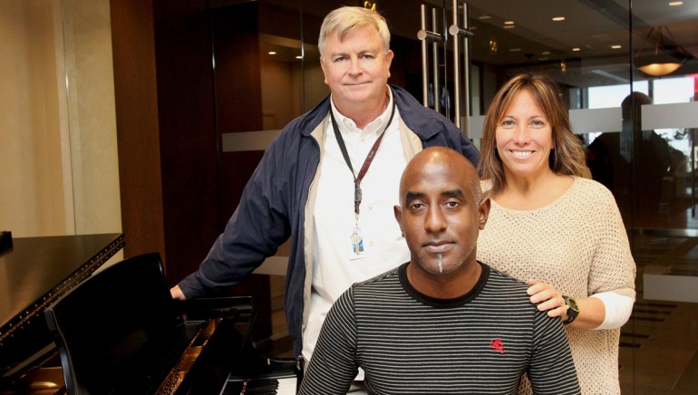 Josh Rudder, CEO of Copyright Organization of Trinidad and Tobago, or COTT, stopped by BMI’s New York office during a visit to the city. He is pictured with BMI’s Phil Graham and Consuelo Sayago.