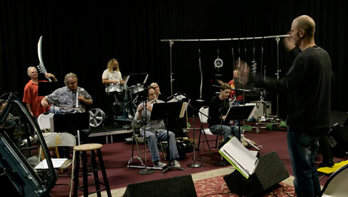 The composer explains what was integral was to have these unorthodox instruments achieve symphonic cohesion. “The concept was to have instruments made out of car parts that could play beautifully, rather than the ‘clangy’ percussion ensemble one might expect car parts could do.” And he recalls his initial reaction when the director explained the concept. “He asked, ‘Do you want to write a piece for car parts?’ What composer would say no to that.”