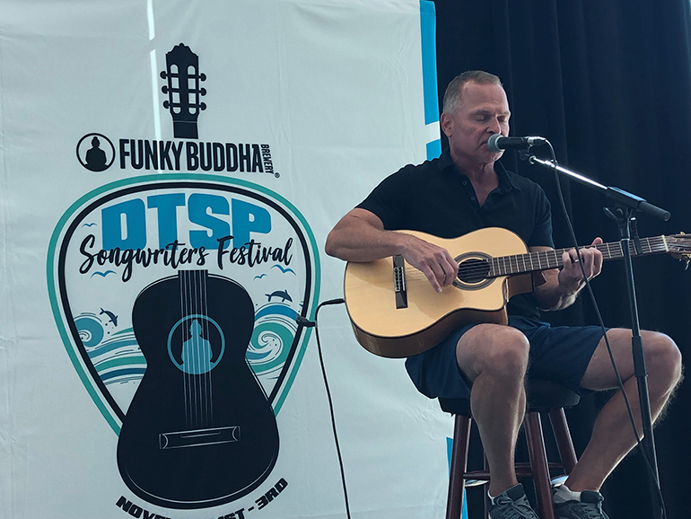 Award-winning BMI songwriter Tim James performs at the Downtown St. Petersburg Songwriters Festival press conference.