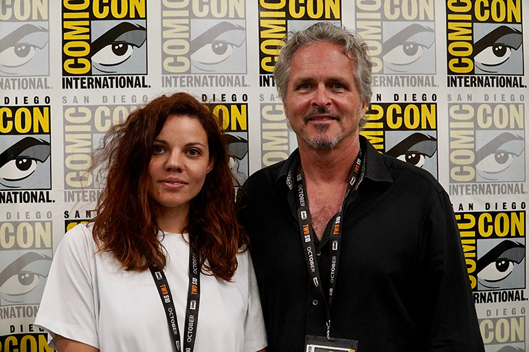 BMI composers Anna Drubich and Patric Caird pause for a press photo at Comic Con before their panels.