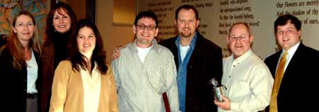 ![]() Celebrating at BMI Nashville are MCA Nashville's Pat Payne; Connie Woolsey of the Erv Woolsey Company, representing Strait; Big Yellow Dog Music's Carla Wallace; songwriters Jay Knowles and Odie Blackmon; Sony/ATV Tree's Woody Bomar; and BMI's Bradley Collins. |