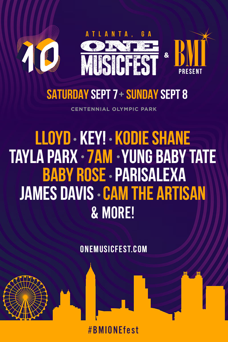 “We are extremely excited to launch the inaugural BMI Stage at One Musicfest,” said BMI Vice President, Creative, Atlanta, Catherine Brewton. “The musical excellence of this city continues to leave a significant mark on the entertainment industry. We’re thrilled to shine a spotlight on some of our most promising talent and contribute to Atlanta’s acclaimed reputation as a beacon of new music discovery.”