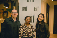 BMI’s Jon Miller, Goodness Victor (Spotify Songwriters) and BMI’s Anu Gantumur at BMI London’s holiday mixer. View Photo