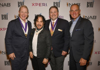 Sophia Gripari (songwriter), BMI’s Anu Gantumur, Julia Miller (Chosen Music) and Dwayne Stewart (Lionbear Music Group) at BMI London’s holiday mixer. View Photo